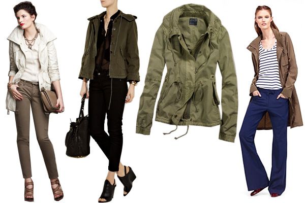 Above, from left: Ann Taylor Memory Anorak, $228, available at Ann Taylor; Textile By Elizabeth & James Robinson Parka, $365, available at Net-A-Porter; AE Surplus Anorak, $69.50, available at American Eagle Outffiters; Theory Hattie L Anorak, $425, available at Theory.