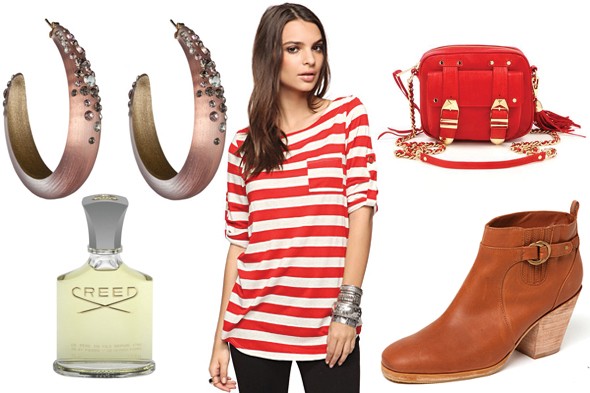 Top, clockwise: Alexis Bittar earrings, $255. Forever 21 top, $25. Rebecca Minkoff bag, $295. Rachel Comey Boots from Steven Alan, $368. Creed perfume, $150. Courtesy Photos.