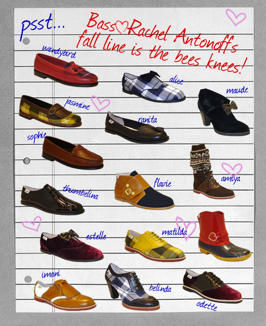 Here is a peek at fall’s forthcoming styles. The Bass Hearts RA fall collection is filled with wintry styles sure to warm your heart. Bass’ leathers are mixed with adorable velvets and sporty plaids to create a cute mix of proper and punk. Popular styles from last season, like the Alice and Wendybird, have been transformed by Antonoff’s swift hand into perfect shoes to brighten a fall day.