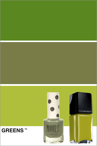 Topshop Nail Polish in Hunting, $10, available at Topshop; Illamasqua Nail Varnish in Radium, $14, available at Sephora.