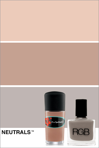 Above, from left: MAC Surf Baby Nail Lacquer in Hangin' Loose, $15, available May 25 at MAC; RGB Nail Polish in Stone, $14, available at RGB.