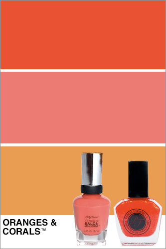 Above, from left: Tracy Reese for Sally Hansen Complete Salon Manicure in Coral Fever, $7.99, available at drugstores nationwide; Perfect Formula Nail Polish in Calypso, $15, available at Perfect Formula.Deborah Lippmann Nail Polish in Girls Just Want to Have Fun, $16, available at Lippmann Collection; Illamasqua Nail Varnish in Purity, $14, available at Sephora.