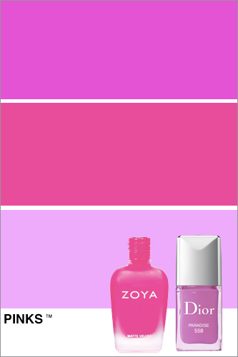 Above, from left: Zoya Mod Matte Nail Polish in Lolly, $8, available at Zoya; Dior Vernis in Paradise, $26, available at Dior.Above, from left: Orly Nail Polish in Va Va Voom, $7.50, available at Sally Beauty; OPI Nail Polish in I Lily Love You, $8.50, available in June; visit OPI for locations.