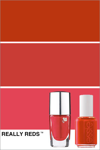 Above, from left: OPI Red Shatter, $14.95 (for Glam Slam! set with Rally Pretty Pink), visit OPI for locations; Estee Lauder Nail Lacquer in Pure Red, $19, available at Estee Lauder.