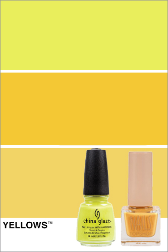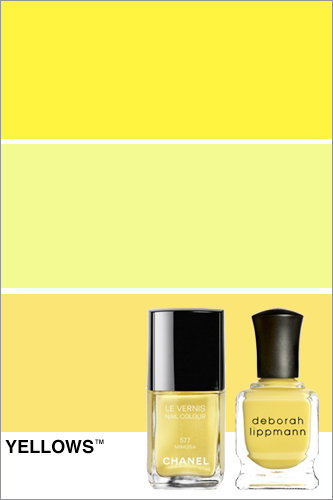Above, from left: Chanel Vernis in Mimosa, $25, available at Chanel; Deborah Lippmann Nail Polish in Yellow Brick Road, $16, available at Lippmann Collection.