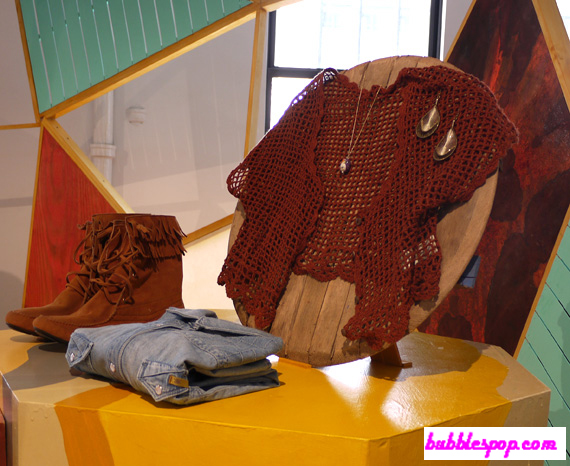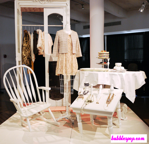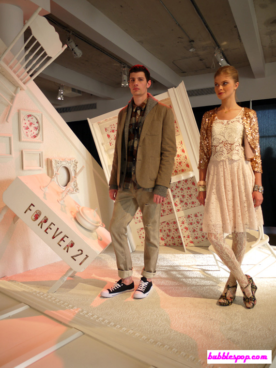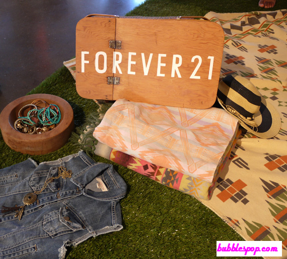 Forever 21 hosted its Fall 2011 installation at Skylight West yesterday with four of main categories that they’ll be offering in stores in a few months. First up is my fave, dark edgy rock ‘n’ roll looks; second is the Western, Navajo-inspired looks; third is the romantic, grannie-like looks; and lastly the 70s Boho looks. Really cute looks in each station, love all the props they had on display which was made by their in-house team in a month (amazing)! Guests were also welcome to take any of the trinkets and rings on display, it was like a little shopping spree- love Forever 21′s accessories. If you’re a fan of F21 like me, here’s a quick a sneak peek…