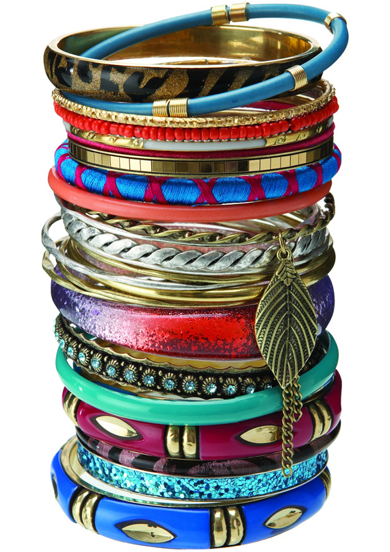Meadham Kirchhoff have created packs of ten mixed metal rings or ten multicoloured bangles designed to be worn all together, as in the duo’s SS11 mainline collection. Each gift set is different, and comes packaged in a beautiful embroidered heart-shaped box. Chunky statement rings sit alongside quirky plastic and ornate metal designs, whilst clear glitter bangles come with ethnic fabric bracelets and other assorted styles. This jewellery collaboration follows a clothing line with Meadham Kirchhoff that hits stores mid April.