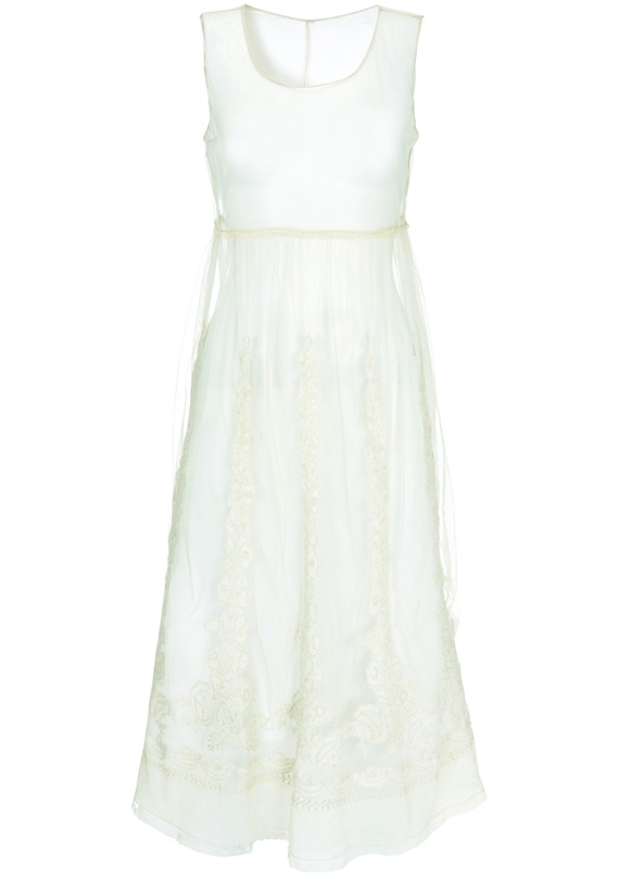Tom Scott is a New York based designer whose work is characterized by architectural construction that is simultaneously modern and understated, sophisticated and feminine. He will join the TOPSHOP Emerge stable for SS11, with his pieces sitting within the Secret Store space. Tom’s SS11 collection, entitled “the bomb”, borrows its name from a 1915 Iowa College yearbook found on ebay. Inspired by forgotten sports and utility uniforms and classic Americana, Scott takes an innovative and humorous approach in shape, stitch and proportion. A key piece is the silver raffia T-shirt, hand made in Bolivia by a women’s cooperative with silver and clear raffia knotted together.