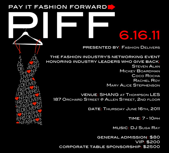 Fashion Delivers, a charitable organization, is hosting its 4th annual “Pay it Fashion Forward” event at SHANG at Thompson LES on Thursday, June 16th. This year’s event will bring together tastemakers and insiders to honor five leaders in the fashion industry for their positive work within their communities: designer Steven Alan, Paper Magazine’s Mickey Boardman, model/activist Coco Rocha, designer Rachel Roy and stylist Mary Alice Stephenson.