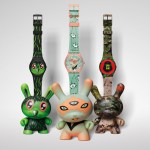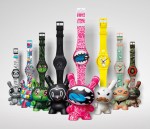 The Kidrobot for Swatch collection is currently available at Swatch stores either separately, in which case each model comes with its complementary Dunny, or as part of a special Kidrobot limited and numbered edition of 300 sets. Each Kidrobot Special Set (GZS48) is comprised of the eight Kidrobot watches in the collection, each watch in the set carries its limited edition number (001/300) and is presented in special packaging together with its corresponding Dunny. Eight of the Dunnys are 3 inches high, while Frank Kozik’s mustachio’d white Dunny comes in a special 20-inch high version.