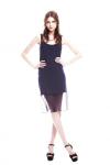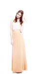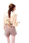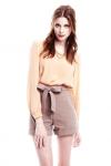 Lauren Conrad’s third collection for Paper Crown, and so far the look for the line is consistent–sweet wearable basics that you could picture LC wearing. This season’s got an adorable mod twist with Peter Pan collars on blouses and an especially charming pink striped day coat. There are lots of girly bow details than run throughout the collection and they’re particularly charming on the backs blouses that dip low in the back. I also liked the dresses with longer hemlines and baggy sweaters styled over floral skirts while I found the shorter solid-color dresses to be kind of a snooze.