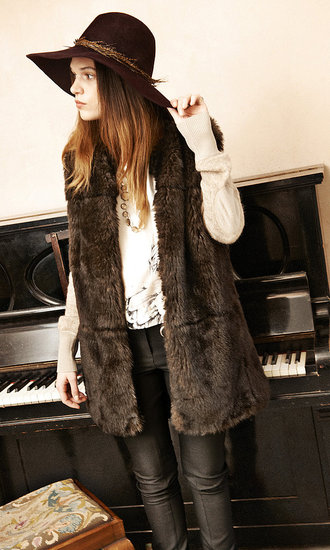 Baylee Faux Fur Vest, Desinee Cardigan, Riley Top, Diana Legging Eugenia Kim Hat, Smokey Glass Necklace