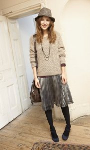 Dylan Sweater, Sabrina Top, Gwyneth Skirt, Faye Fedora Jet Bead and Gold Necklace, Janice Bag