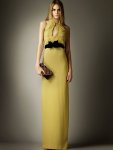 Christopher Bailey was in a demure state of mind while designing the Burberry Pre-Fall 2012 collection. Colors are muted, waists are nipped while hemlines run longer, and half of the evening gown options have sleeves. A whiff of the ’30s also runs through, between the chrysanthemum print dresses and the ruched bow belts that played a part in almost every look.