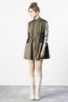 Pastel camouflage prints and standard-issue olive green were the motifs of choice in the Pre-Fall 2012 outing of Thakoon’s lower-priced Addition line. The designer himself described the oversize-pocketed full skirts and swing jackets as “flirty, cheeky military.”