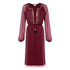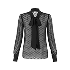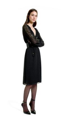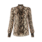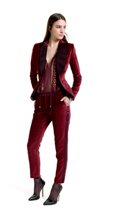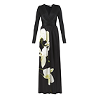 Included are slinky, snake-print dresses; structured trench coats; bordeaux velvet pantsuits; a navy silk blouse; and a floor-length, floral-print maxi dress of which Halston himself would approve. In fact, the entire collection gives off pretty strong ’70s vibe — so, if you’re down with the decade of Klute, this might be your jam. Oh yes, and that black lace mask is here, too. I am definitely excited for this collection!