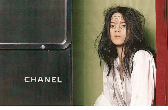 The tour de dress-up continues for Freja Beha Erichsen in a couple of newly-released Chanel Fall 2011 ads. The first leaked set of images showed Beha Erichsen in a Chanel eyemask or a lace veil and panties, but now the campaign goes more playful — Freja as cat, with Chanel’s signature camellias as her ears — definitely the mark of campaign stylist Carine Roitfeld on the brand.