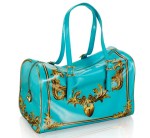 Leather Shirt: $349, Painted Jeans: $99, Guitar Shaped Weekender: $399