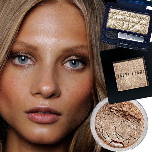From top to bottom: Dior 1 Couleur Eyeshadow in Gold Touch, $29; Bobbi Brown Shimmer Wash in Champange, $20; Bare Escentuals Bareminerals Glimmer in True Gold, $13