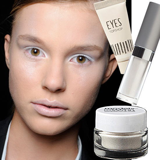 From top to bottom: Topshop Cream Eyeshadow in Snowstorm, $10; Colorscience Pro Loose Mineral Eyeshadow in Matte White, $19; Models Own Eyeshadow in Pearl White, $8