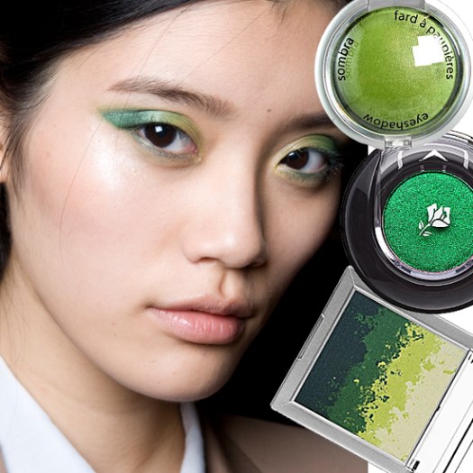 Super-saturated, shimmery green tones were all the rage at the Jason Wu Spring 2011 show. Models sported two-tone washes — colorblock for the eyes, if you will. Use a lighter shade in the inside corner to make eyes appear extra-wide.