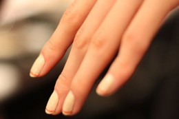 The nails on Prabal Gurung’s spring runway featured Sally Hansen’s Without a Stitch and a strip of the rosey coral Casting Call. Perfect neutral with a twist.