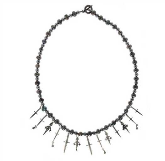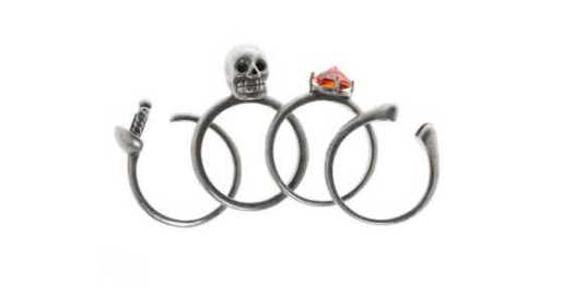 For the collaboration, designer Leeora Catalan drew inspiration from On Stranger Tides, but also added elements that are found in each of the films in the blockbuster franchise. In addition, many of the pieces are meant to be unisex, evident in the brushed silver metal that is used throughout the collection. The elegantly dark collection features skulls adorned with nOir’s signature pave, elaborate mermaid skeletons, and fuses iconic Pirate imagery of swords, daggers, skeleton keys, shark teeth and pearls. A pirate ship full finger ring bends at the knuckle and sails full mast.