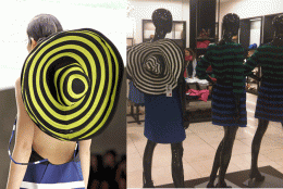 “The entire store is totally Prada-ed out,” our sleuth reports. “The color scheme includes royal blue, and vivid shades of orange, green, and pink. Crop tops and skirts are striped, as are the scarves a la the Prada mink stoles. Prints are tropical and silhouettes are boxy and loose.”
