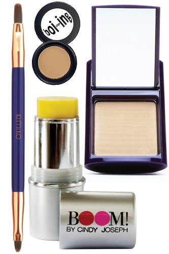 The Tools: Kimiko Essential Concealer Brush, $32, available at Kimiko; Benefit Boi-ing Concealer, $18, available at Sephora; Kimiko Lifting Pressed Powder, $42, available at Kimiko; BOOM! By Cindy Joseph BOOMSTICK Glo, $24, available at BOOM! By Cindy Joseph.